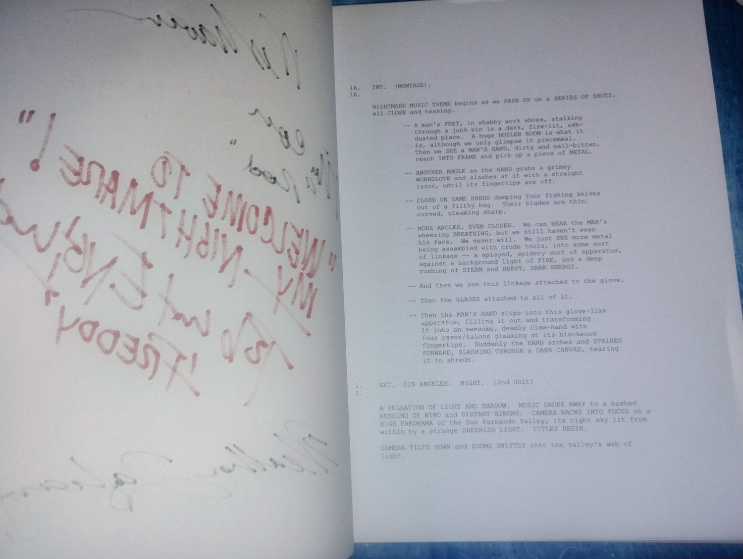 A Nightmare On Elm Street complete post production script hand signed by Wes Cra en, Nick Corri, Robert Englund & Heather Langenkamp