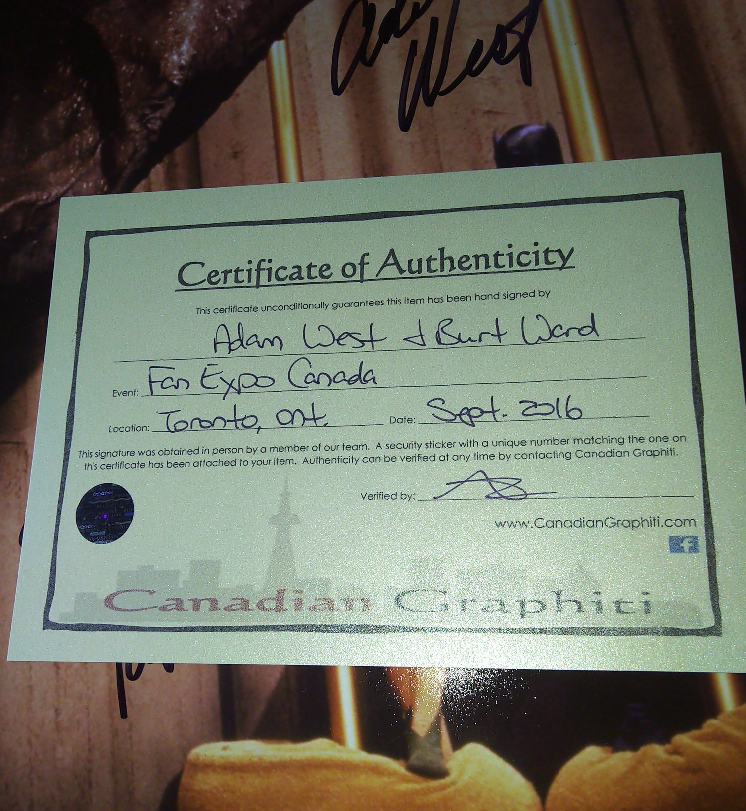 Guaranteed authentic with a Certificate Of Authenticity from Canadian Graphiti