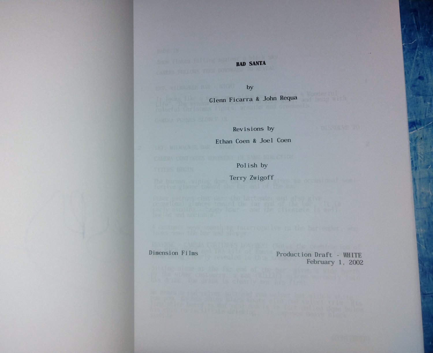 Bad Santa complete post production script hand signed by Billy Bob Thornton