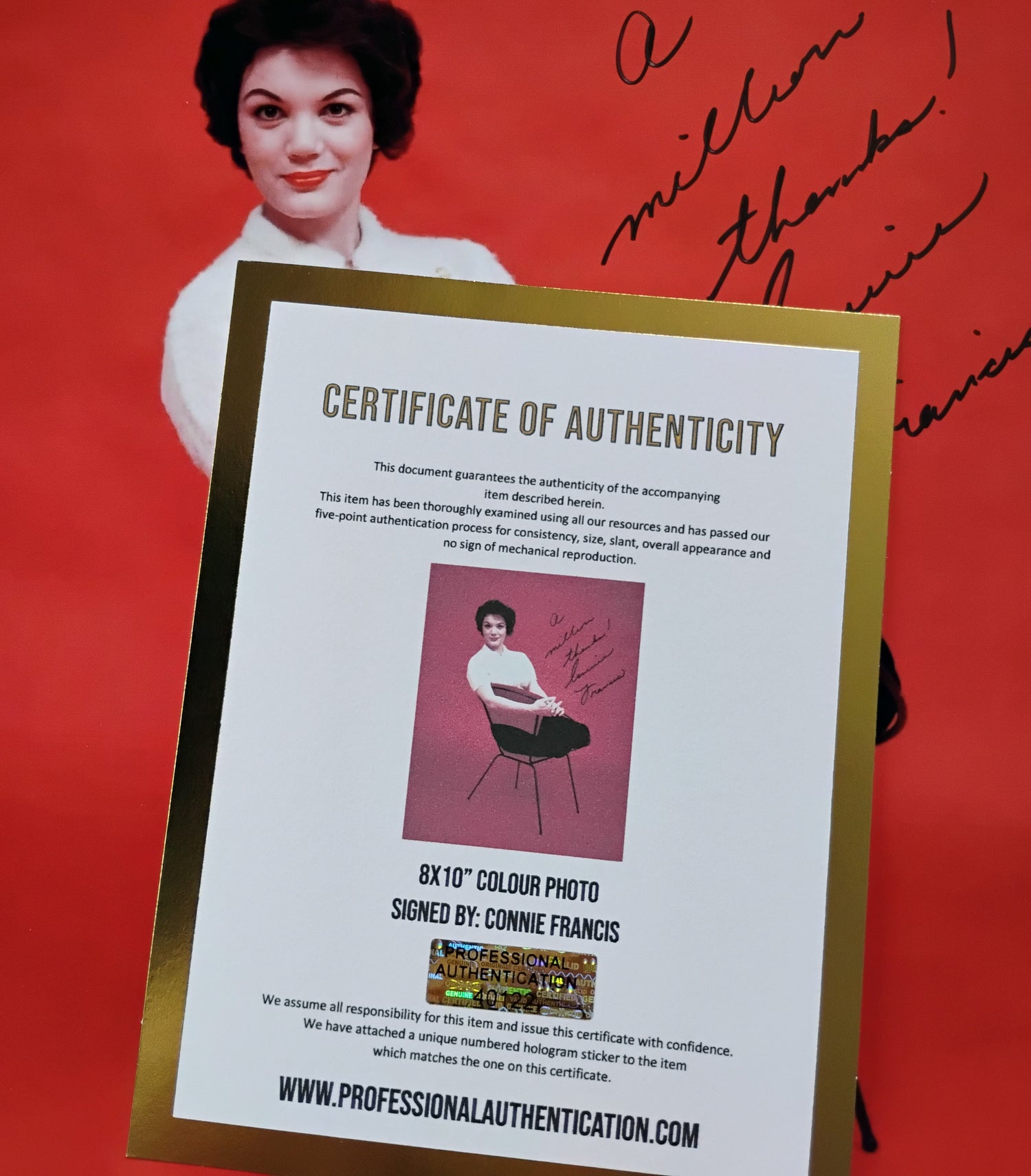 8x10" Photo hand signed by Connie Francis