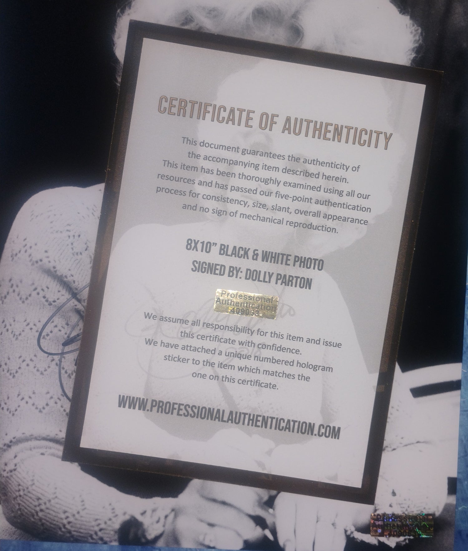 8x10" photo hand signed by Dolly Parton
