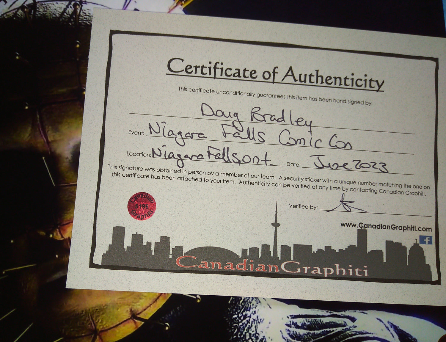 Guaranteed authentic with a Certificate of Authenticity from Canadian Graphiti