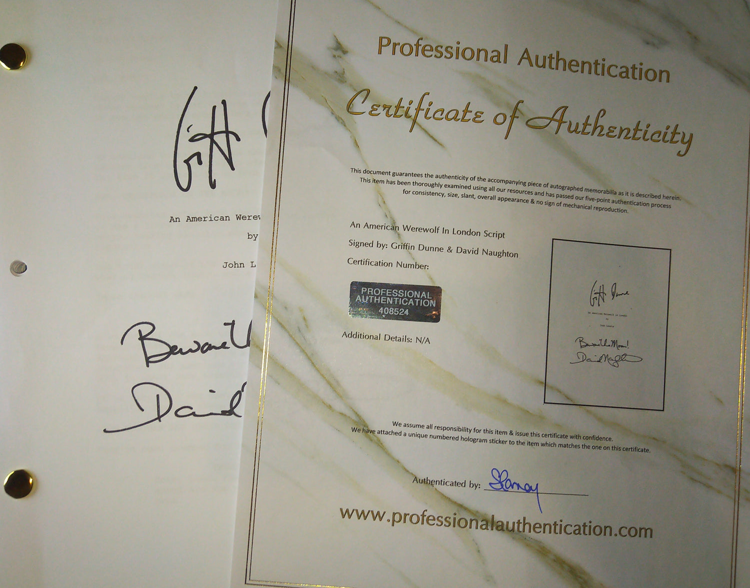 Griffin Dunne & David Naughton Hand Signed Autograph Script COA American Werewolf In London