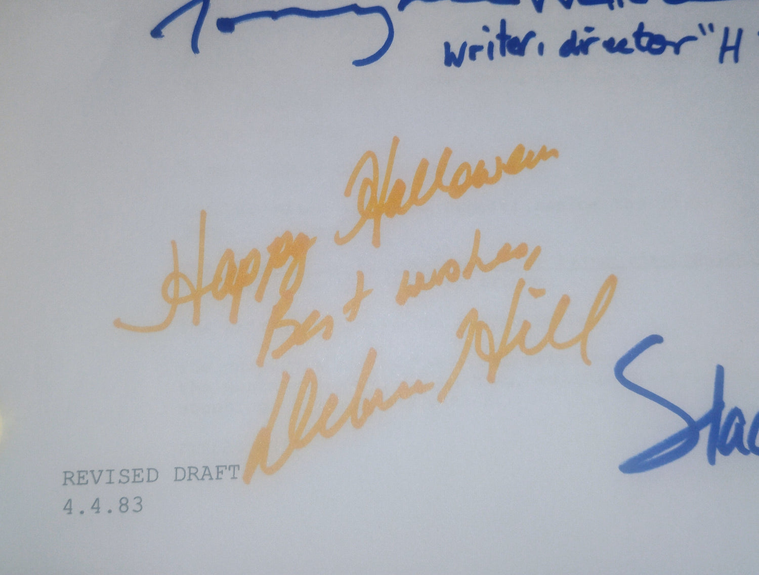 Halloween 3 complete post production script hand signed by Tom Atkins, Tommy Lee Wallace, Debra Hill & Stacey Nelkin