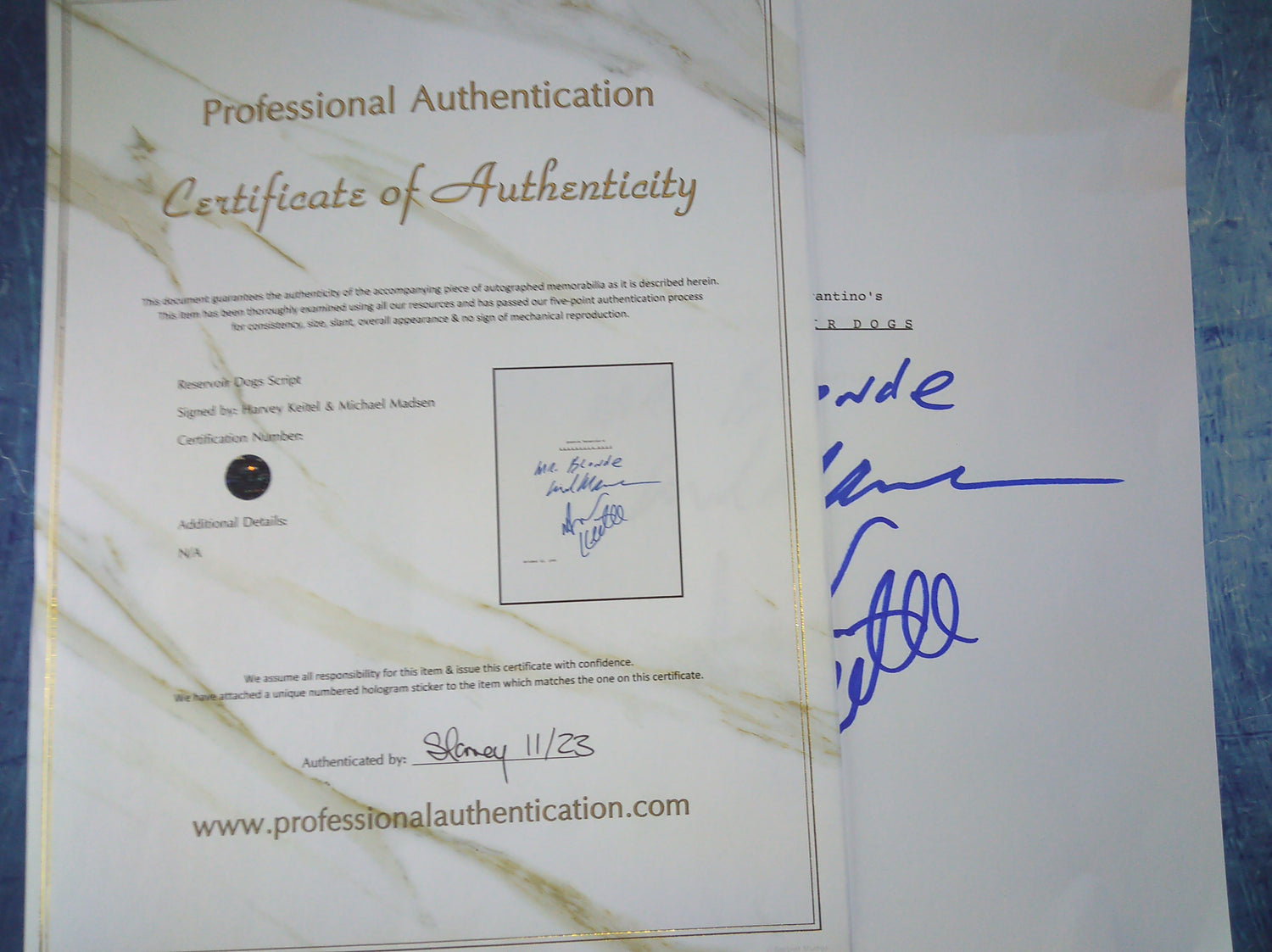 Reservoir Dogs complete post production script hand signed by Harvey Keitel & Michael Madsen