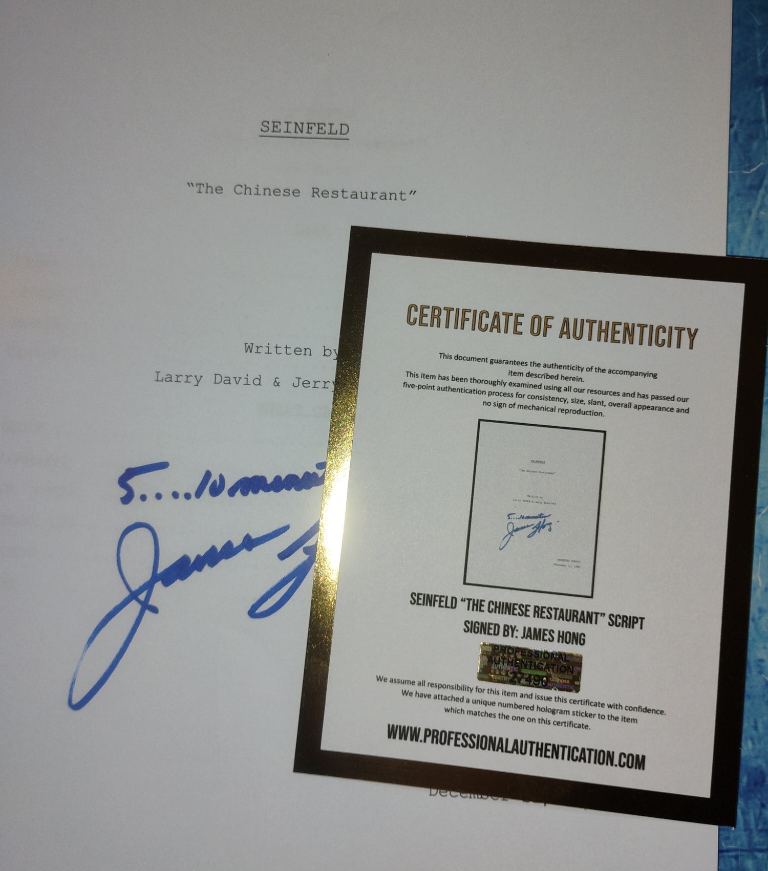 James Hong Hand Signed Autograph Seinfeld Script COA