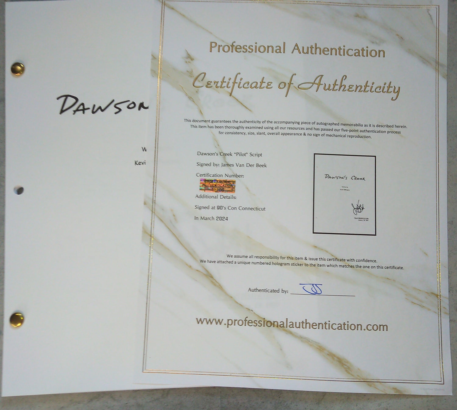 James Van Der Beek Hand Signed Autograph Dawson's Creek Script COA