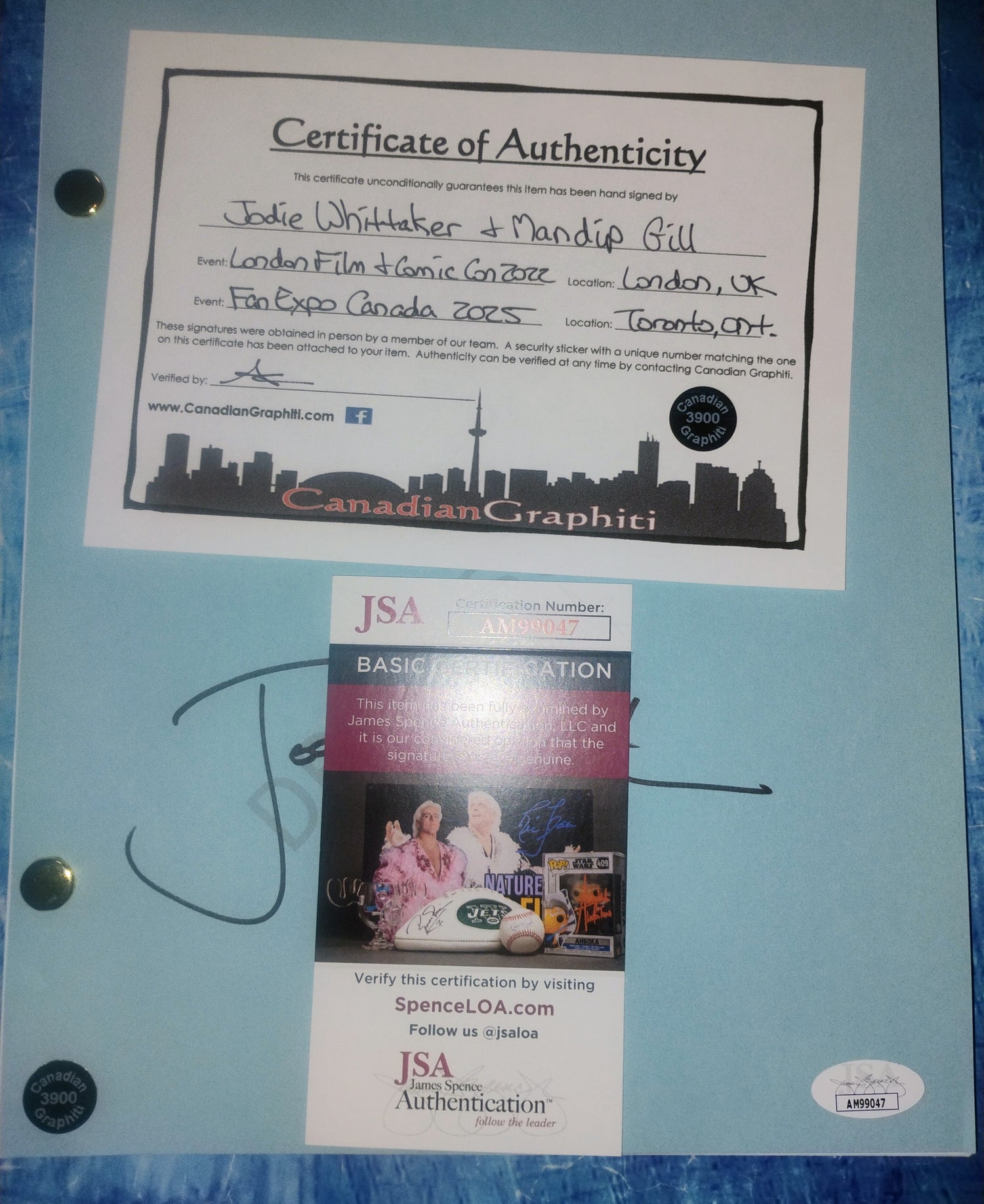 Additional certification from JSA for Jodie Whittaker Additional certification from Official Pix for Mandip Gill