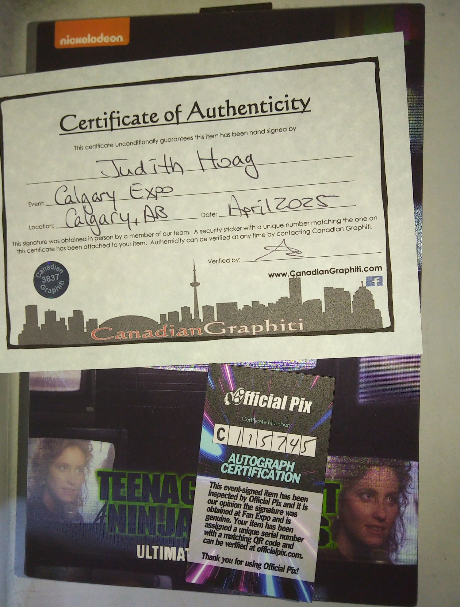 Judith Hoag Hand Signed Autograph April O'Neal Action Figure COA + OPix Teenage Mutant Ninja Turtles