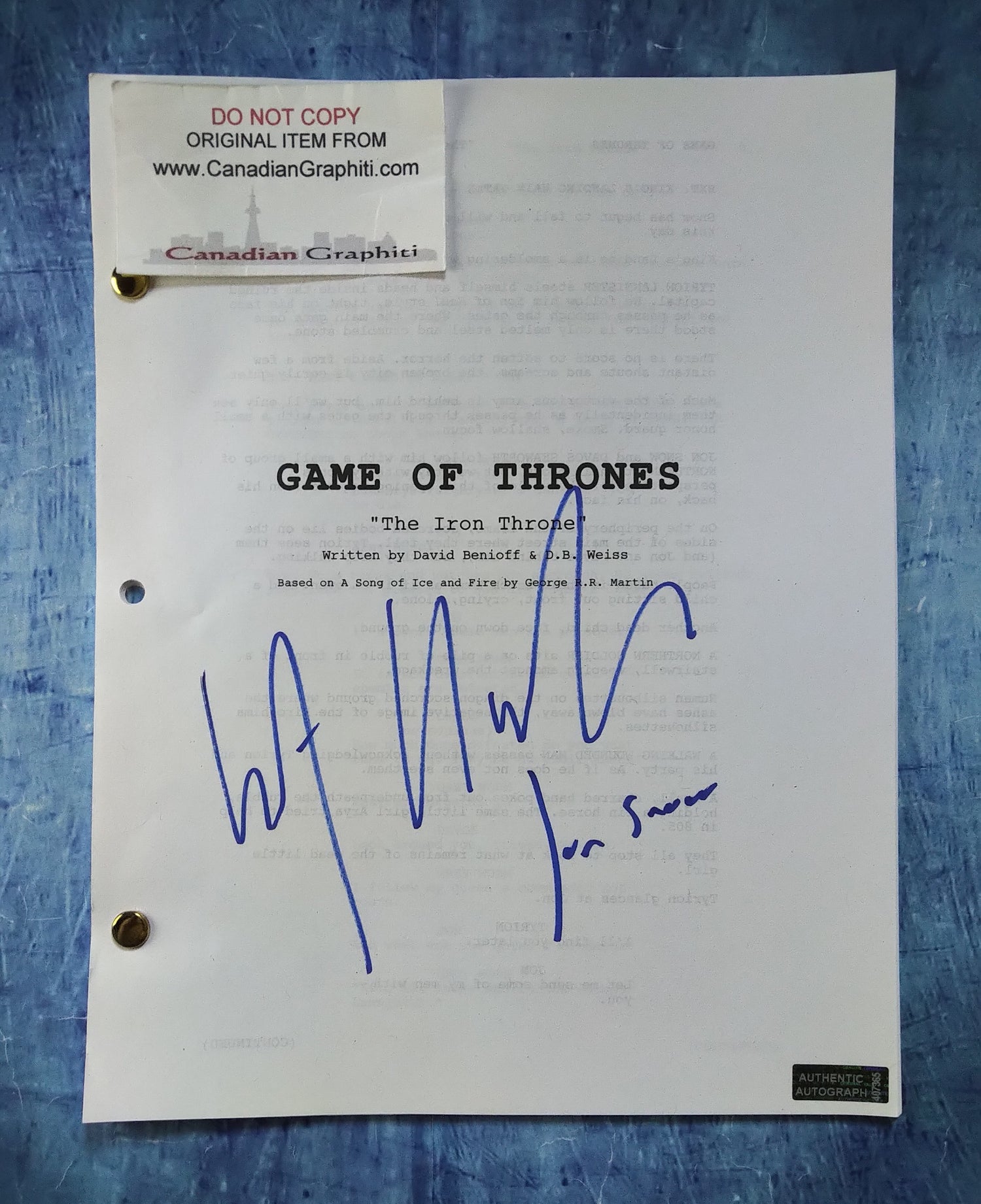 Game of Thrones complete post production script hand signed by Kit Harington