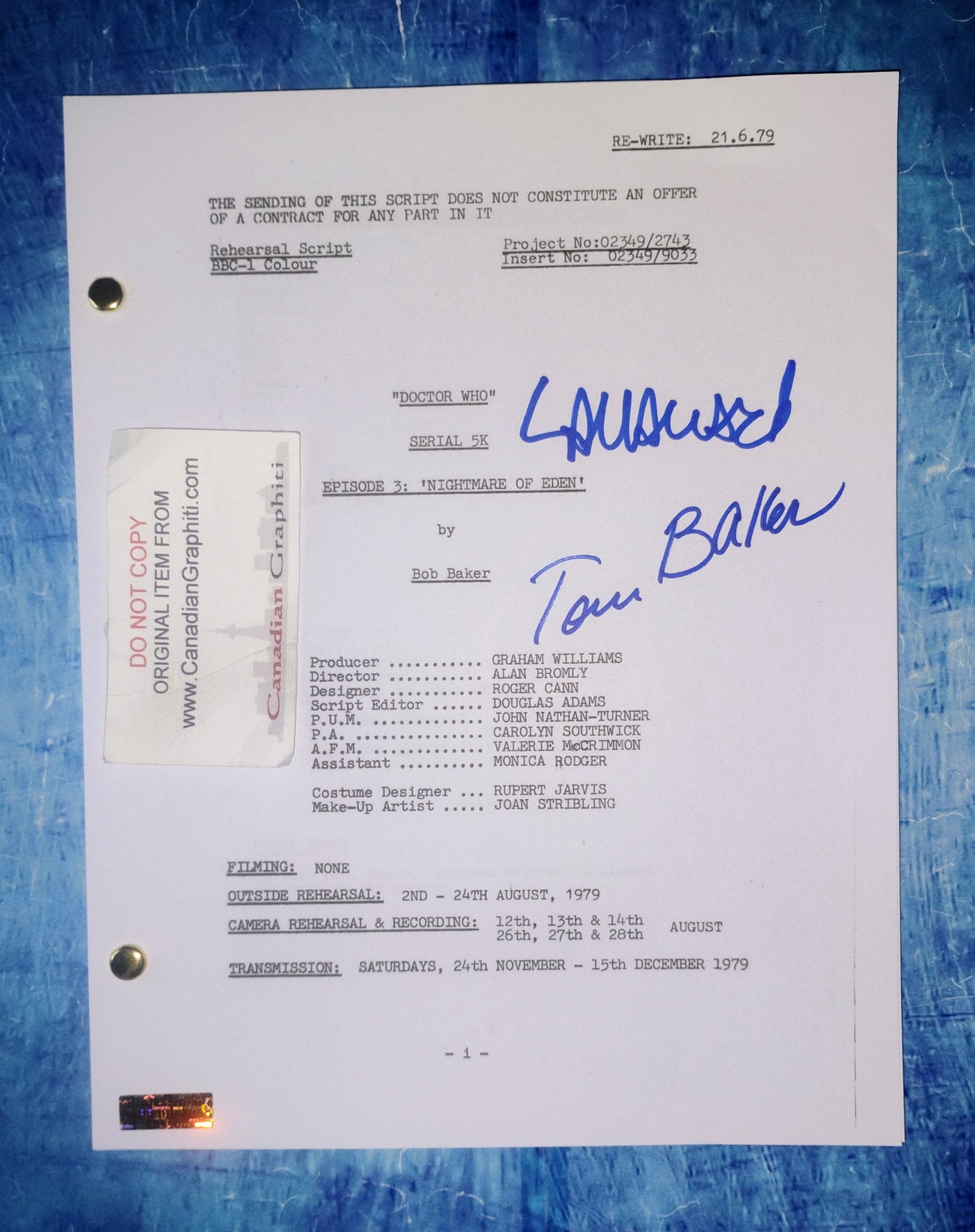 Doctor Who complete Nightmare In Eden Part 1 script signed by Tom Baker & Lalla Ward