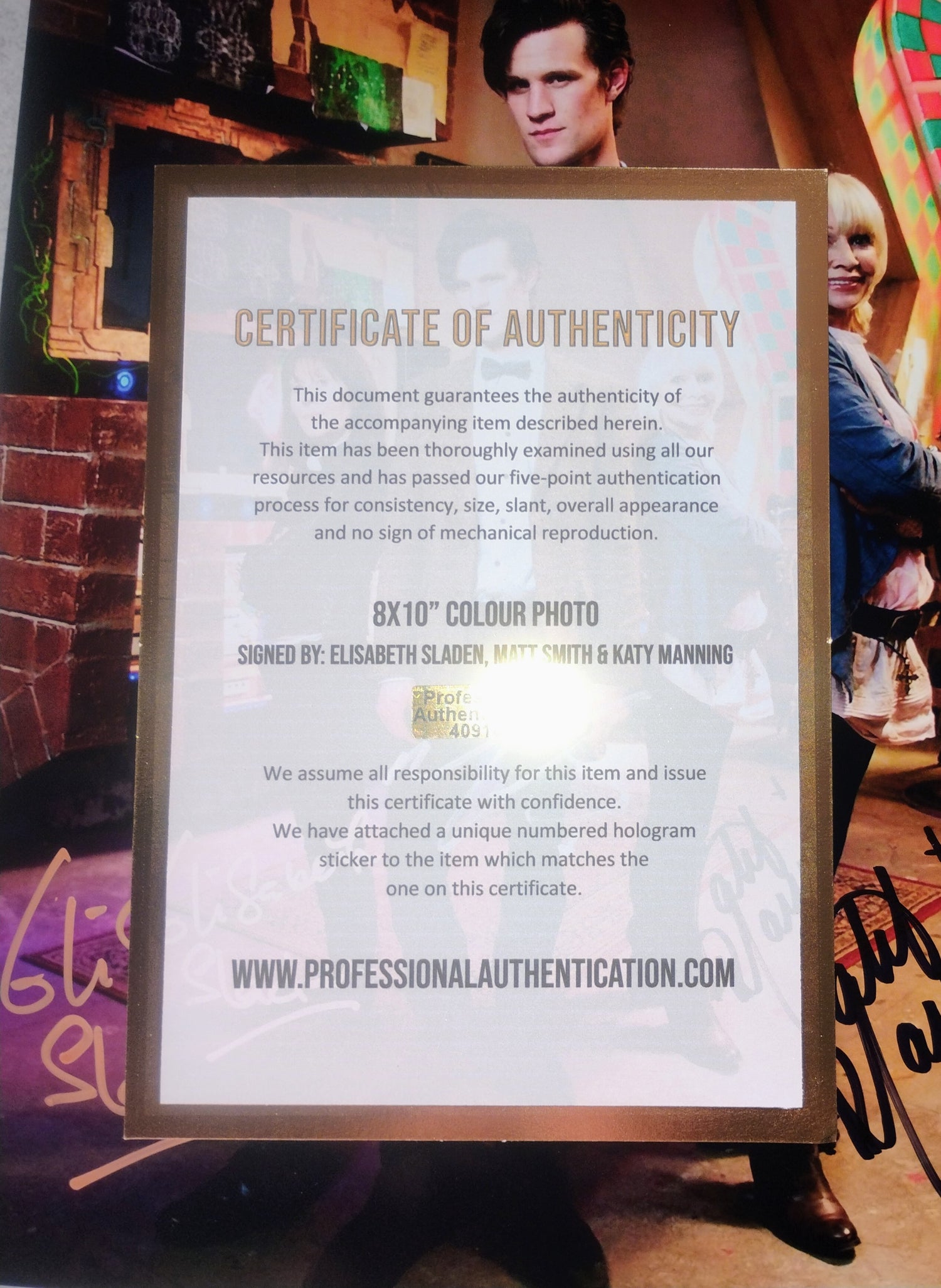 Matt Smith, Elisabeth Sladen & Katy Manning Hand Signed Autograph 8x10 Photo COA Doctor Who