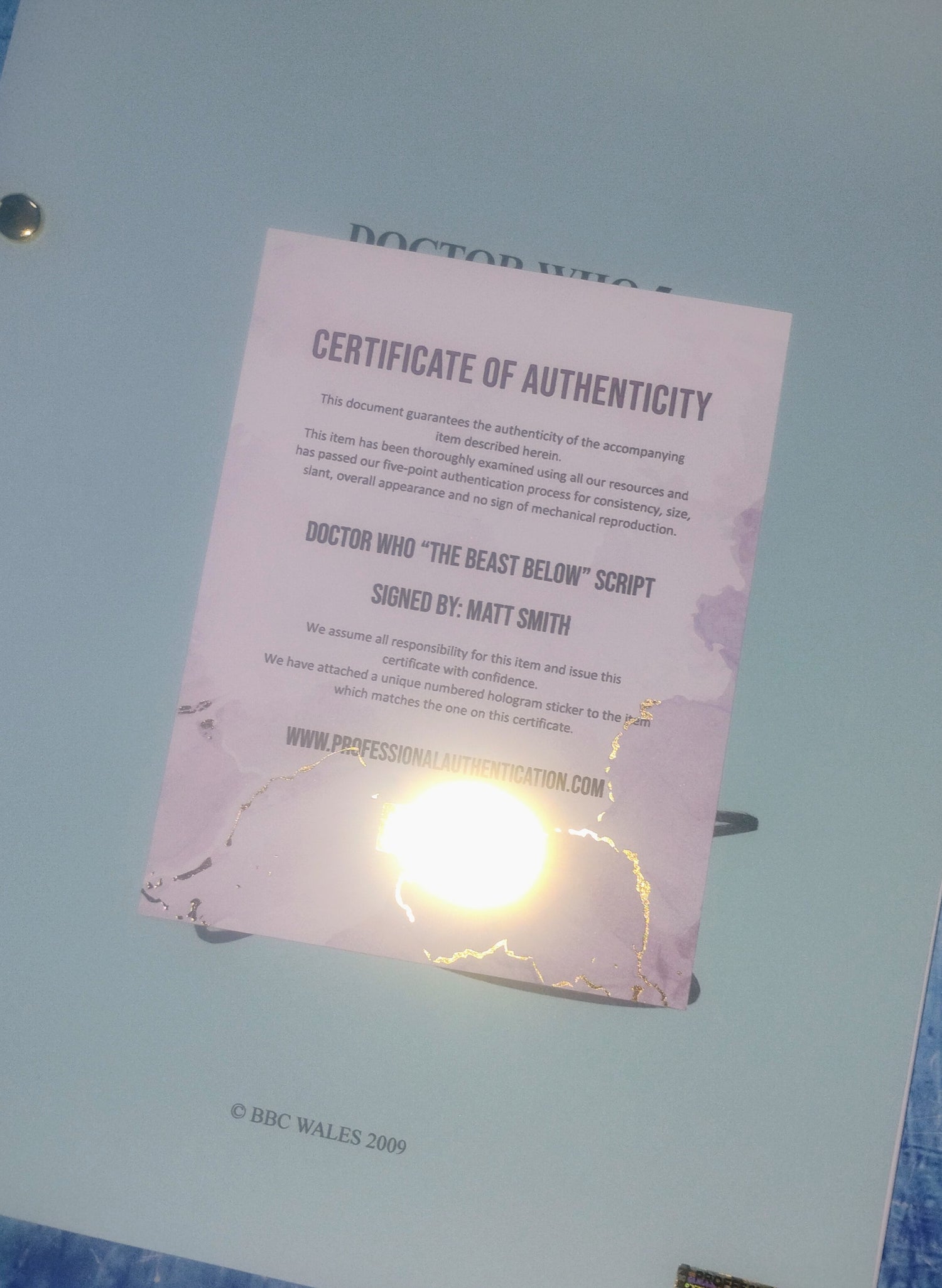 Matt Smith Hand Signed Autograph Doctor Who Script COA