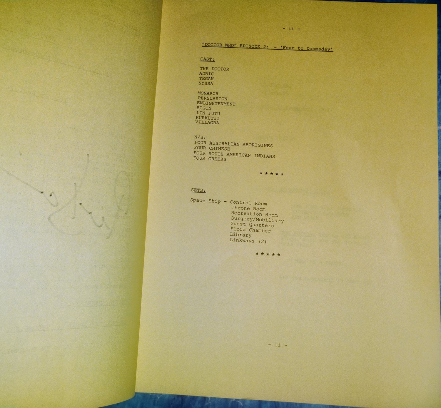Doctor Who complete Four To Doomsday Part 2 script signed by Peter Davison