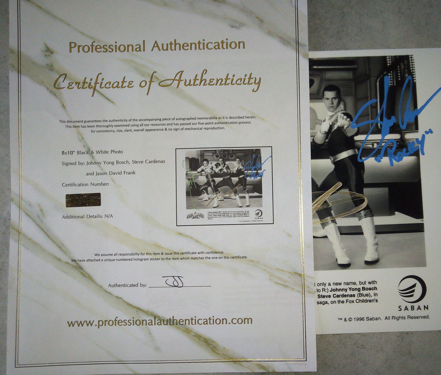 Power Rangers 3 Cast Hand Signed Autograph 8x10 Photo COA Jason David Frank