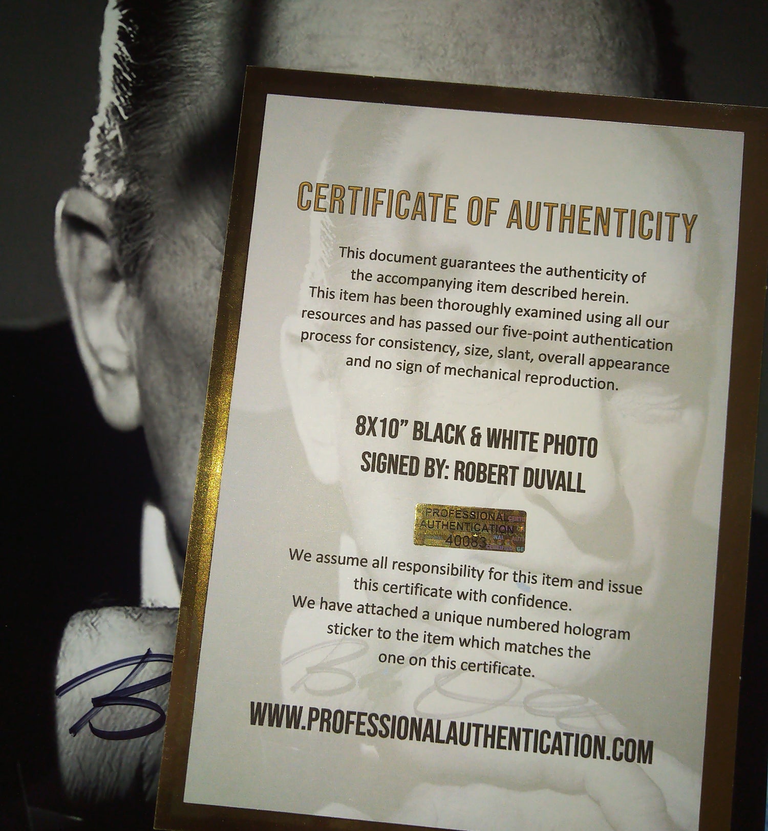 8x10" photo autographed by Robert Duvall