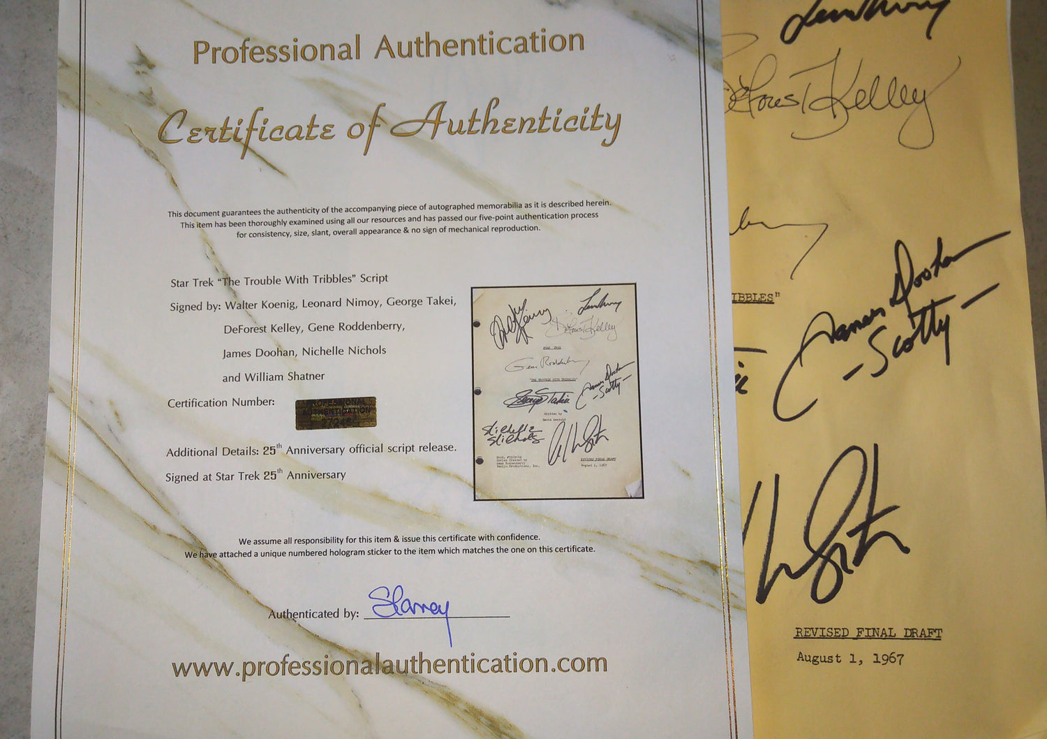 Star Trek complete script signed by Gene Roddenberry, Walter Koenig, Leonard Nimoy, Nichelle Nichols, DeForest Kelley, George Takei, James Doohan & William Shatner