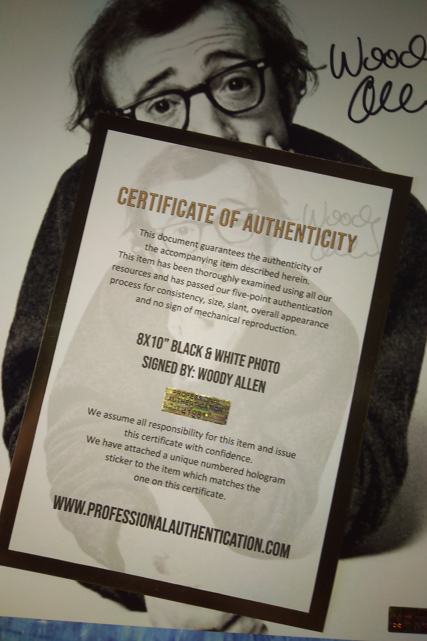8x10" photo autographed by Woody Allen