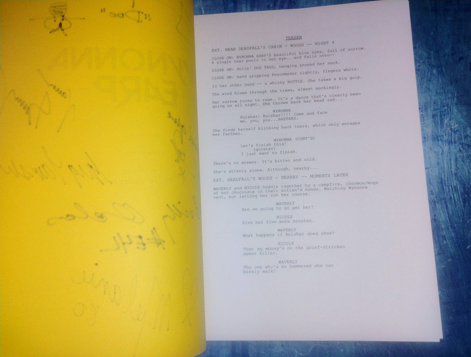 Wynonna Earp complete script signed by Tim Rozon, Dominique Provost-Chalkley, Varun Saranga, Greg Lawson, Emily Andras & Melanie Scrofano